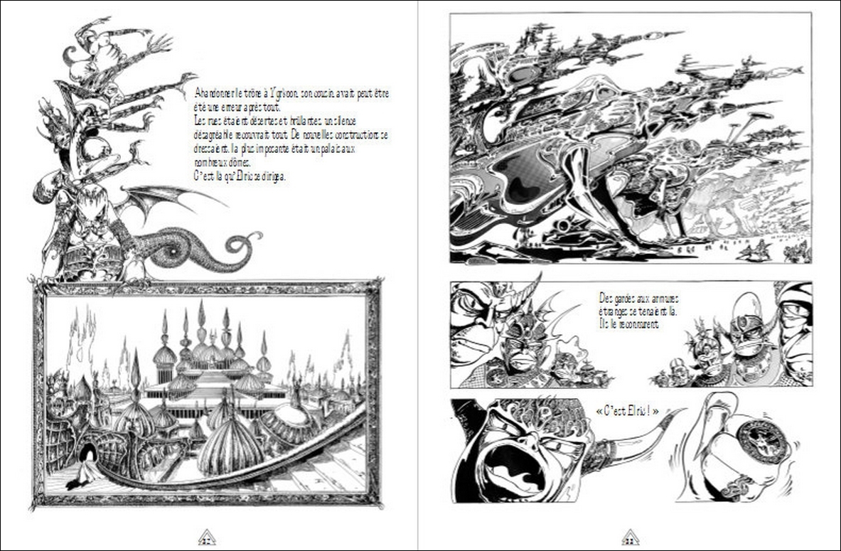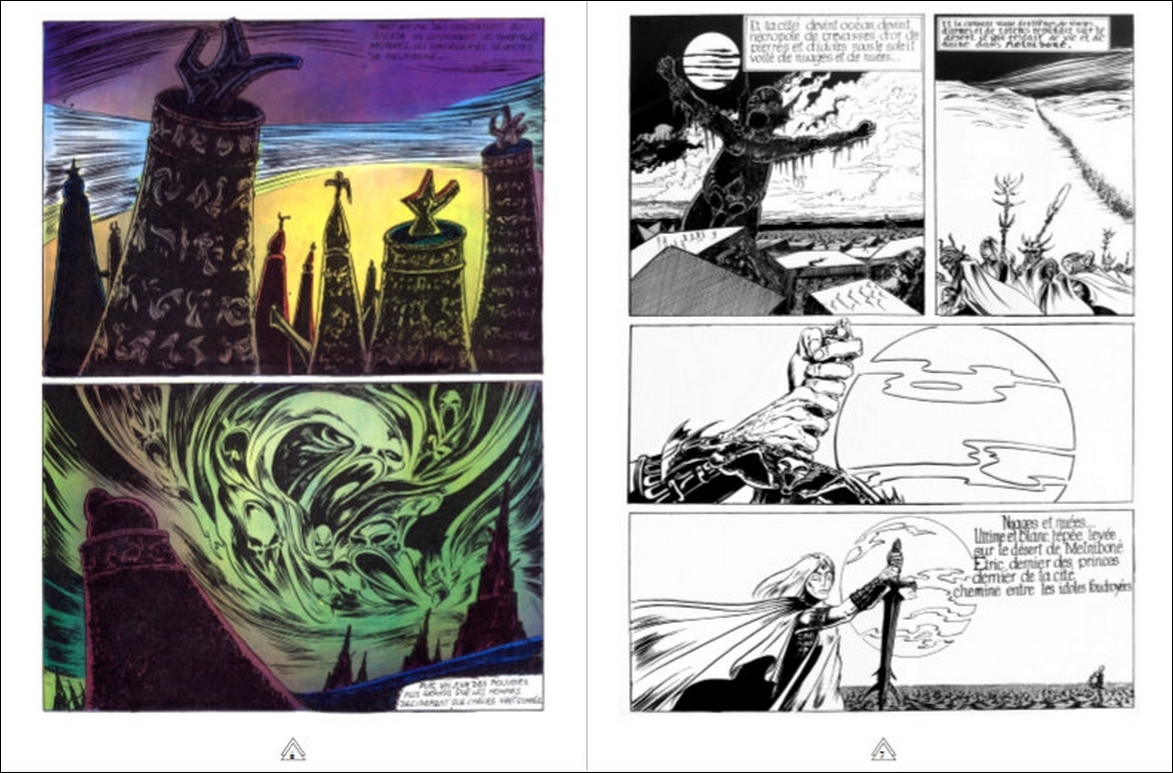 Первым свидетельством этой одержимости стала самая первая версия «Элрика», опубликованная в единственном (и от того легендарном) номере журнала «Moi Aussi» в декабре 1966 года. Две полосы появились в центральном развороте — это был не скрепленный, раскладной плакат, который трансформировал стандартный формат 22x28 см в монструозные 44x56 см.