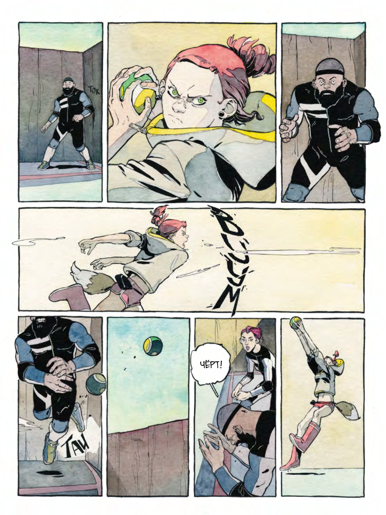 Этот образчик современной научной фантастики в формате комикса обладает потрясающей графикой. Благодаря присутствию юмора, вносящего легкость, и спортивной составляющей, графический роман несомненно найдет отклик у подростковой аудитории.