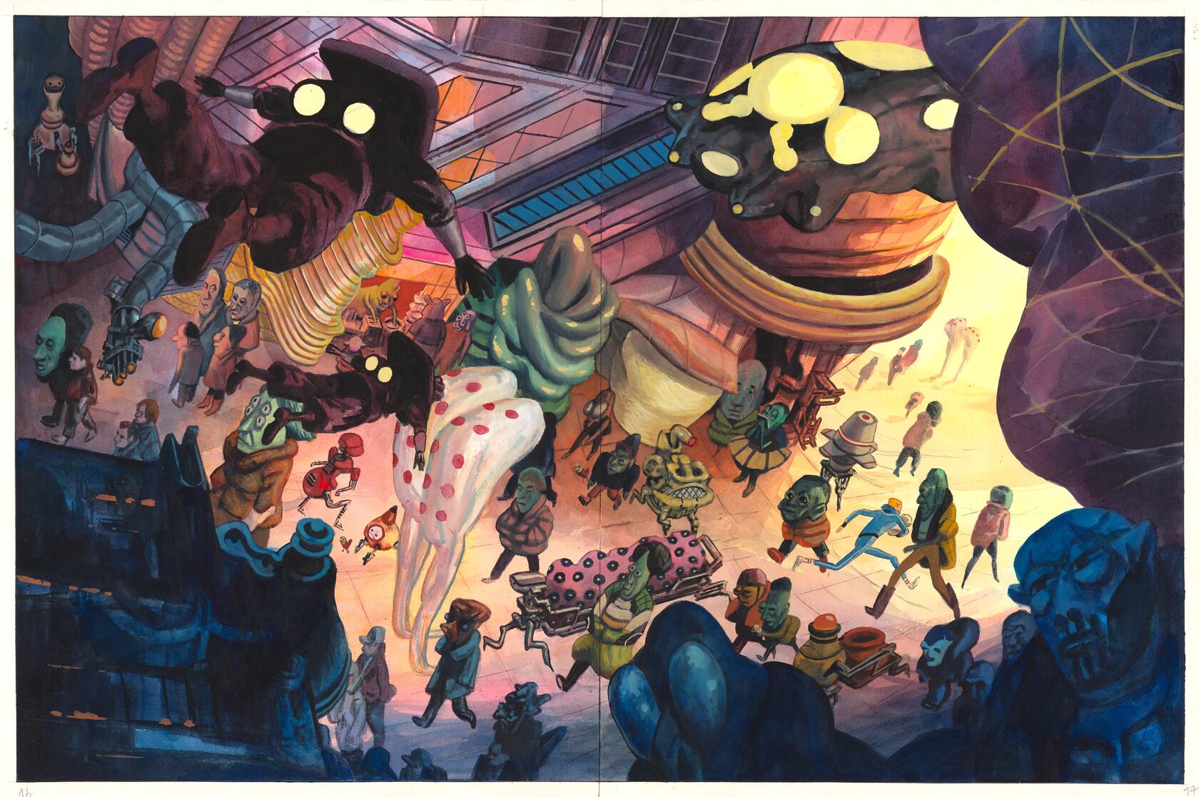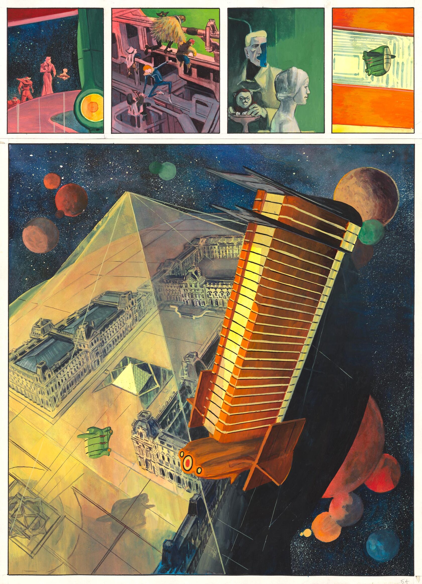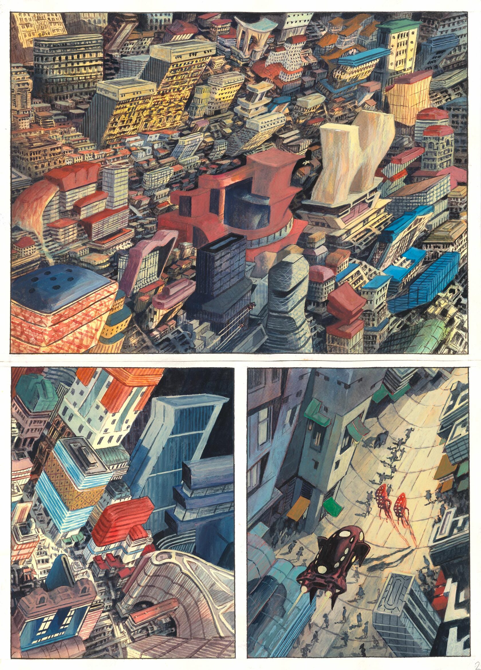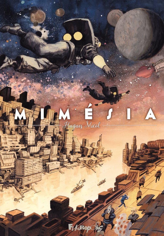 Графический роман «Мимезия» — это квинтэссенция стиля Миколя. Он работает в технике прямой гуаши, создавая невероятные, дышащие цветовые поля и вибрации редких оттенков. Каждый кадр — это живописное полотно, отсылающее то к классическому наследию (от Венеры Милосской до Брейгеля), то к психоделическим космосу «Мёбиуса» и «Дрюйе» из легендарного «Heavy Metal», то к визуальной эстетике «Бегущего по лезвию» и «Дюны».